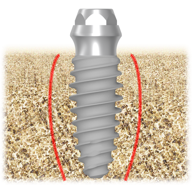 The dome shaped body design increases the bone to implant contact and enhances primary stability.