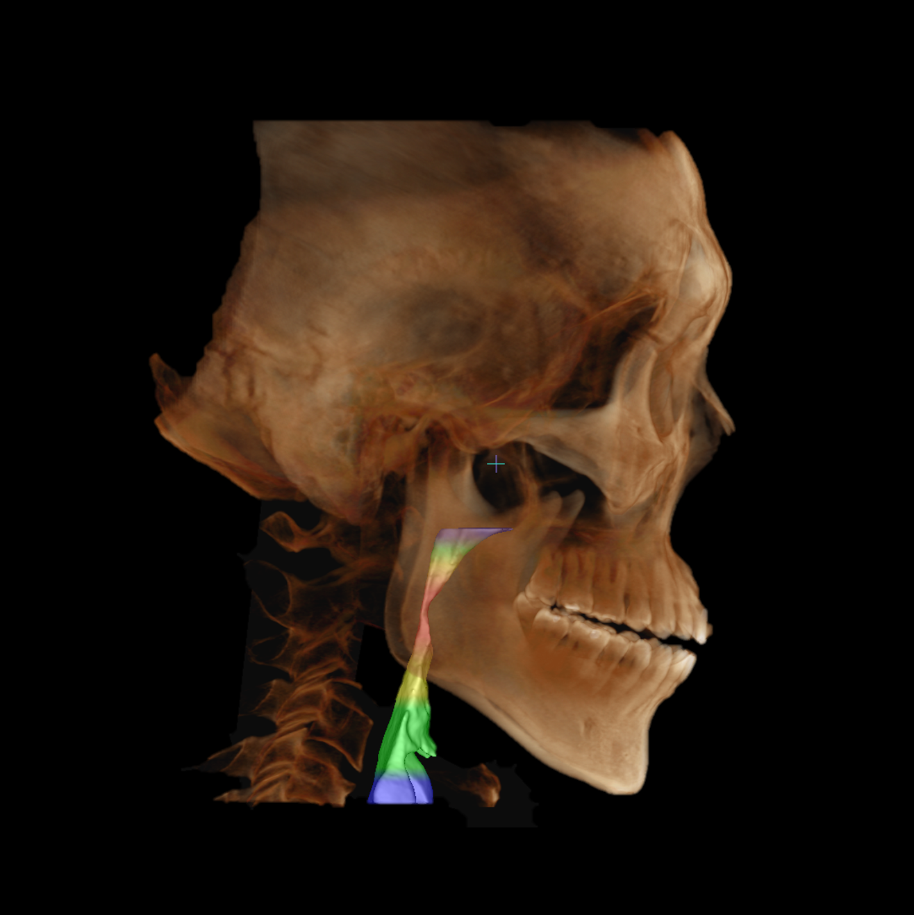 The AI-powered airway analysis automatically segments the airway and provides quantitative analysis of the area. This helps to visualize the changes in the airway space after treatments such as orthodontics or sleep apnea treatment.