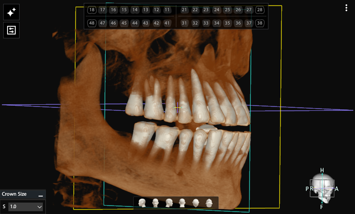 The shape and position of every tooth are automatically detected and segmented for easy viewing. Selecting a specific tooth instantly aligns all view planes to that tooth, allowing clinicians to examine details more quickly.