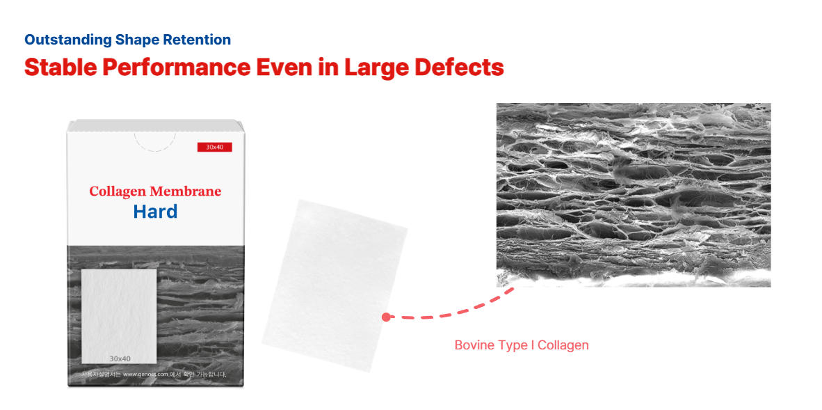 Collagen Membrane Hard is designed to accommodate a wide range of surgical conditions, allowing clinicians to select and apply it flexibly according to clinical requirements.