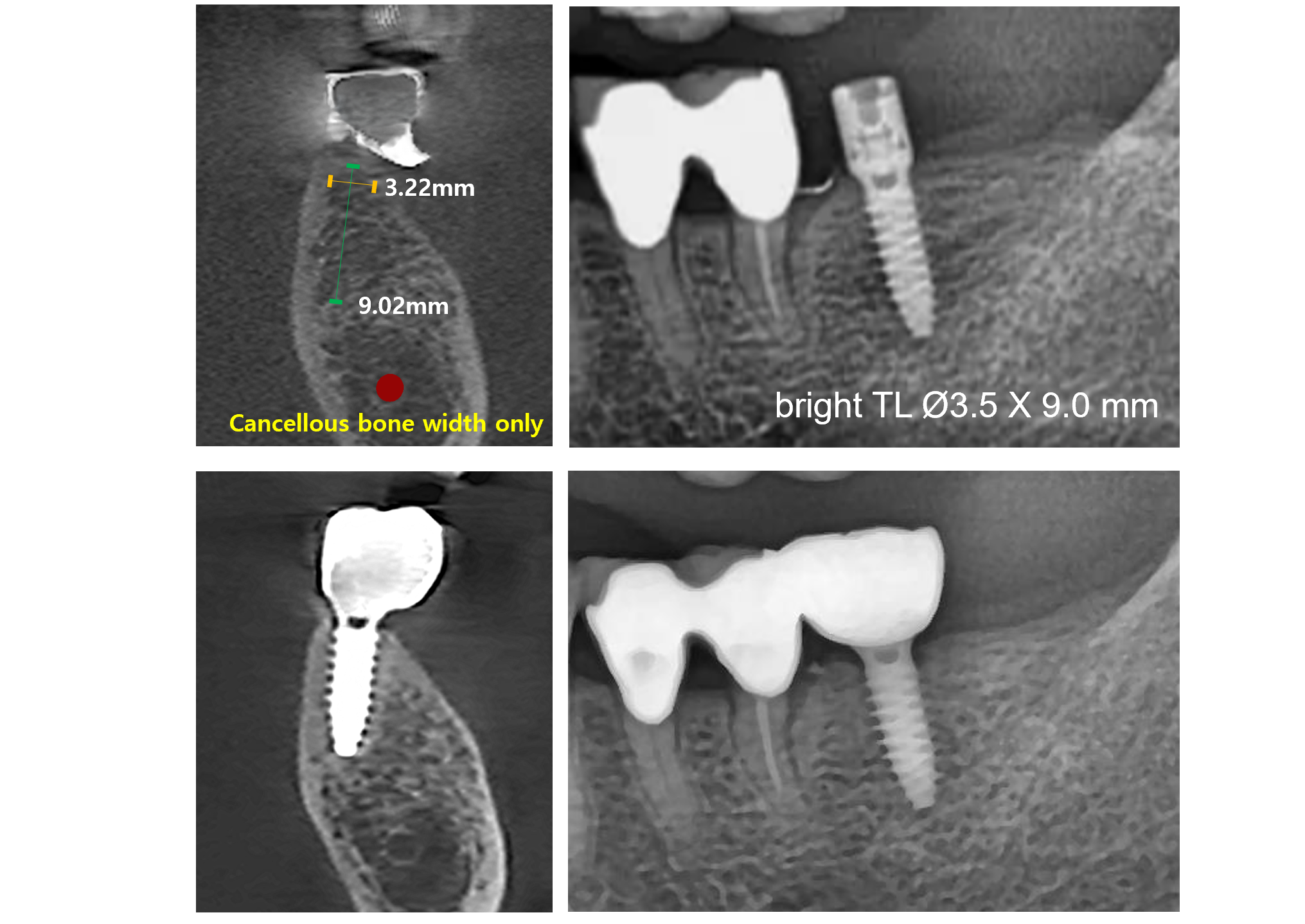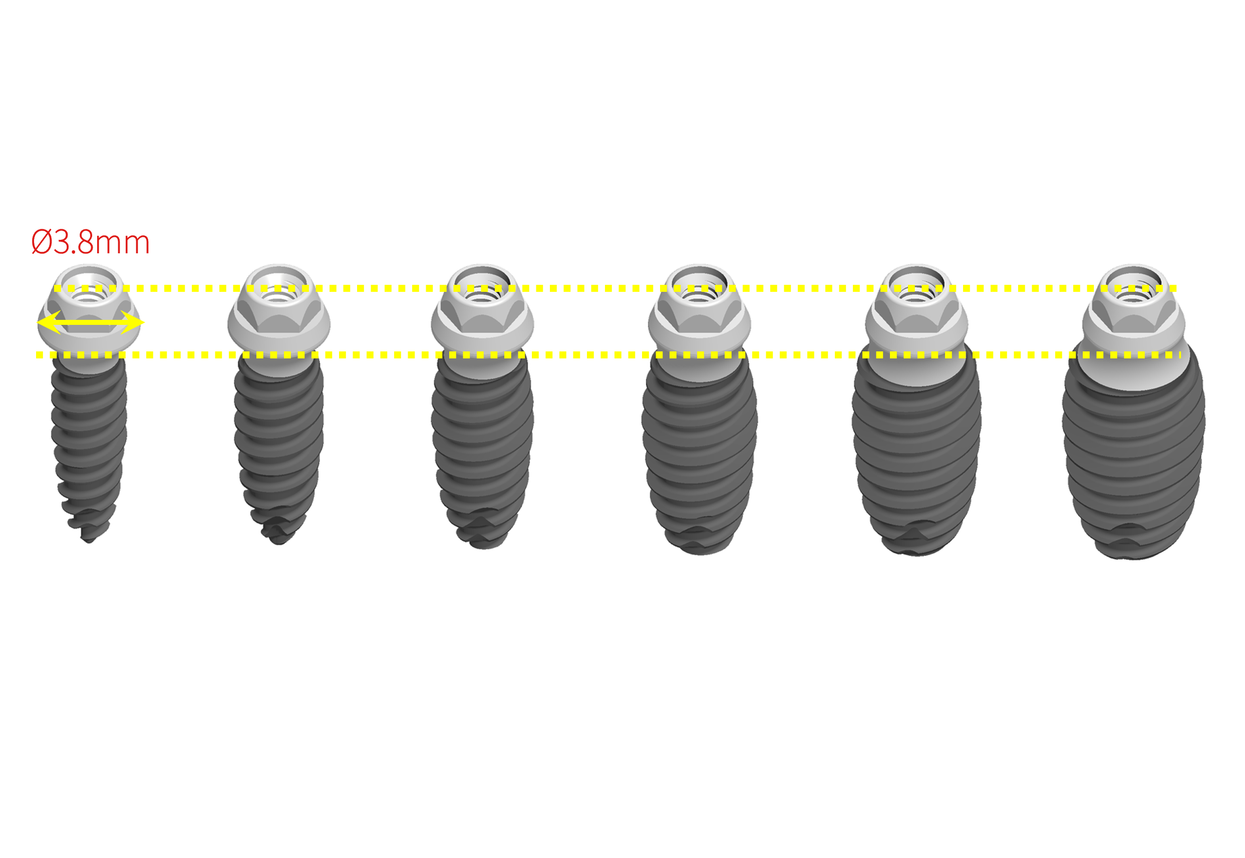 With a reinforced internal structure, the narrow-diameter bright implants can be used for challenging clinical situations with narrow ridges.