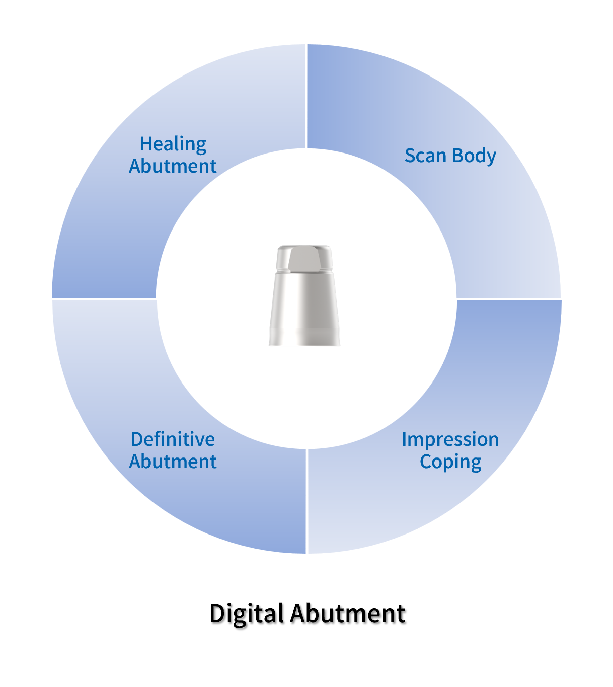 Featuring a 3-side step design for accurate stitching, the Digital Abutment and Ti-Base Abutments are perfectly suited for digital prosthetic workflow.